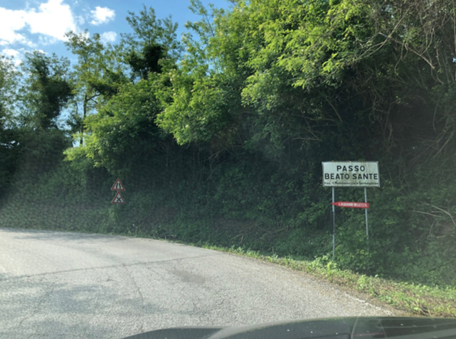 Before arriving at the village itself, turn left to the “Beato Sante”: